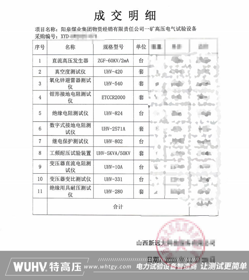 武汉特高压成功中标阳泉煤业高压电气试验设备项目