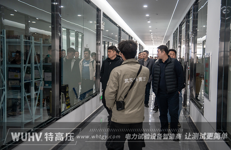 理论学习结束后,讲师带领全体学员前往三楼生产区实地观摩学习。生产区内陈列的各类高压试验设备整齐有序,瞬间吸引了学员们的注意力,大家纷纷驻足察看、主动提问。在讲师的细致引导下,学员们深入了解了试验仪器的生产流程、核心构造及关键技术要点,对设备的研发与生产有了更为直观、深刻的认知。