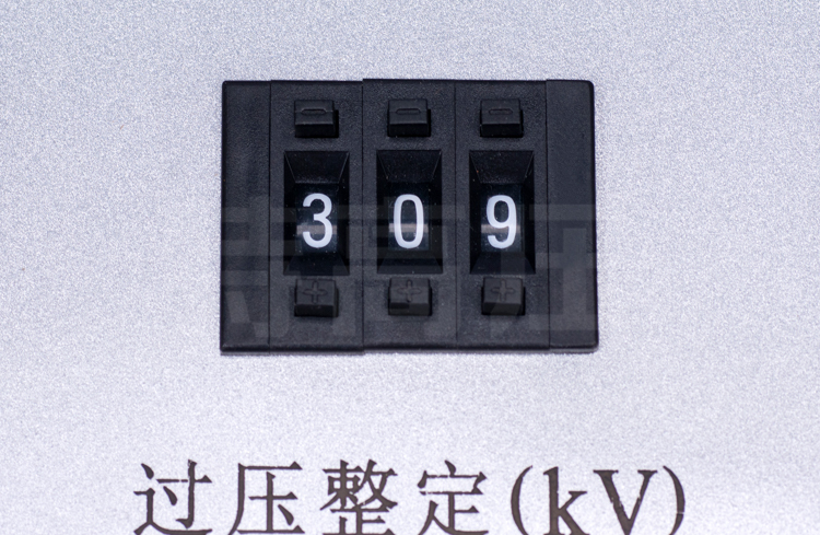 - 6、过电压整定采用了数字拨码开关,能将整定电压值直观显示,显示数值单位为 kV,一目了然。